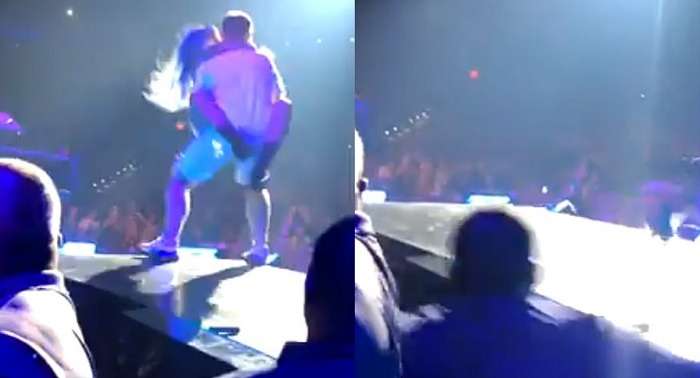 Під час шоу у Лас-Вегасі 33-річна Леді Гага станцювала разом зі своїм фанатом. Музична зірка застрибнула на чоловіка, після чого обоє почали ритмічно рухатися. В якийсь момент фан не втримав рівновагу і разом із Гагою він впав зі сцени.