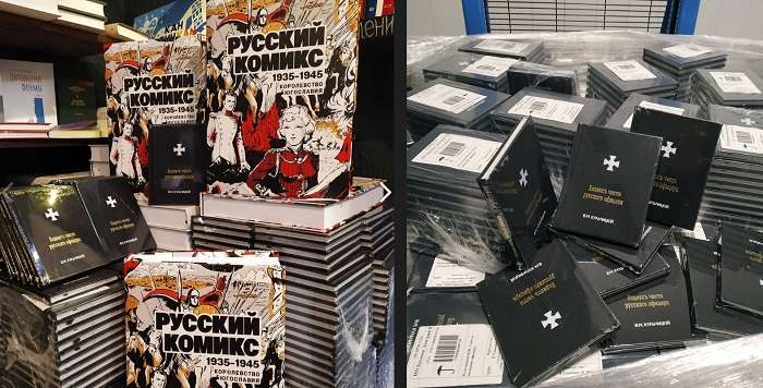 «УРА! Кодекс честі російського офіцера – повернувся! Спасибі всім, хто оформив передзамовлення і допоміг нам в 4 раз перевидати нашу головну книгу! Запасайтеся подарунками, є підозра, що четвертий тираж розійдеться ще швидше, ніж третій! «Русский комікс» знову повернувся! Майже весь тираж додруківки викуплений за попереднім замовленням, залишилося не більше 50 штук!» – зазначив він.