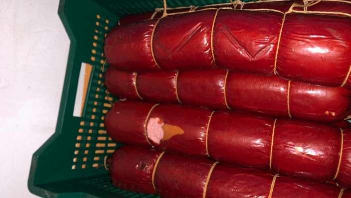 «На момент інспекції виявлено понад 8,864 т готових м’ясних виробів (різні ковбаси), майже 3,616 т твердого сиру, 82 кг паштету, 2,39 т продукту жирового рослинно-вершкового 82, 5% жиру без відповідного маркування та необхідної інформації для споживачів», – йдеться у повідомленні.