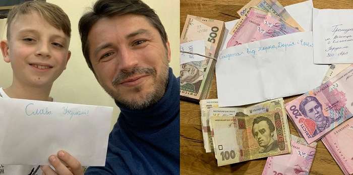 «Ну, думаю, як завжди, фото/селфі. А він сором’язливо простягнув конверт. З одного боку «Слава Україні». З другого «Від Марка, Дарія і Енея». Каже: «Ось, ми на Армію назбирали». Воно якось не пасує, старшому дядькові при підлітках сльозу пускати, то я й не став. Але хотів. І воно так кожного разу, коли хтось після концерту підійде і (на сцені або під гримеркою) тицьне в руку якусь купюру з тихим «на хлопців», – розповів шоумен.