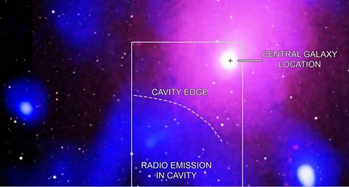 «Докази найбільшого вибуху, що спостерігається у Всесвіті, походять від комбінації рентгенівських даних з Чандри та XMM-Ньютона та масиву Мерчісона, а також гігантського телескопа Метрева. Виверження породжується чорною дірою, розташованою в центральній галактиці скупчення, яка вибухнула струменями і вирізала велику порожнину в навколишньому гарячому газі. Як вважають дослідники, цей вибух вивільнив у п’ять разів більше енергії, ніж попередній рекордсмен, і в сотні тисяч разів більше, ніж типове галактичне скупчення», – відзначили в агентстві.