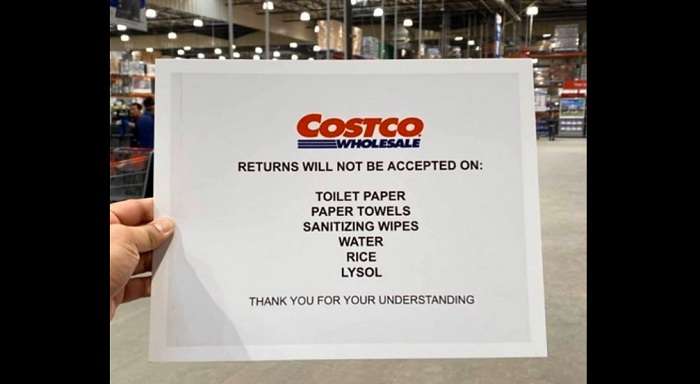 Американська мережа супермаркетів Costco попередила, що клієнти, які кинулися купувати туалетний папір та антисептики у великих об’ємах, не зможуть повернути цей товар назад у магазин. За даними ЗМІ, американці, які зрозуміли, що коронавірус та туалетний папір не взаємопов’язані, вирішили повернути скуплений в паніці товар.