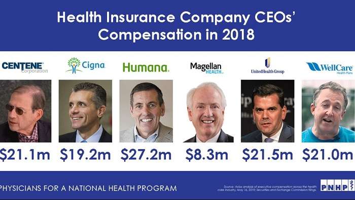 Сьогодні, 28 березня, український письменник Анатолій Ульянов навів дані про зарплати СЕО медичних страхових корпорацій США за 2018 рік.