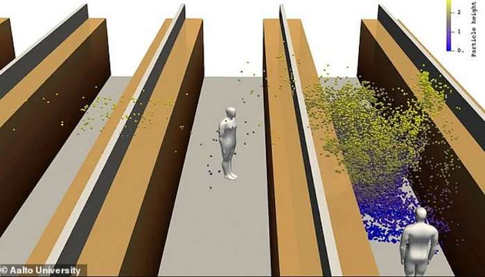 Так, вчені змоделювали відео, на якому показано інфіковану людину в супермаркеті, яка кашлянула під час покупок. На відео видно, що з цього моменту супермаркетом поширюється хмара з мікробів, які можуть заразити інших покупців, навіть якщо вони знаходяться в сусідніх рядах магазину.