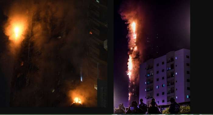 У вівторок, 5 травня, пізно вночі сталась пожежа в 48-поверховій вежі Abbco в Шарджі, ОАЕ. Полум’я швидко поширилось хмарочосом, в результаті уламки будівлі почала падати на найближчі паркінги та вулиці.