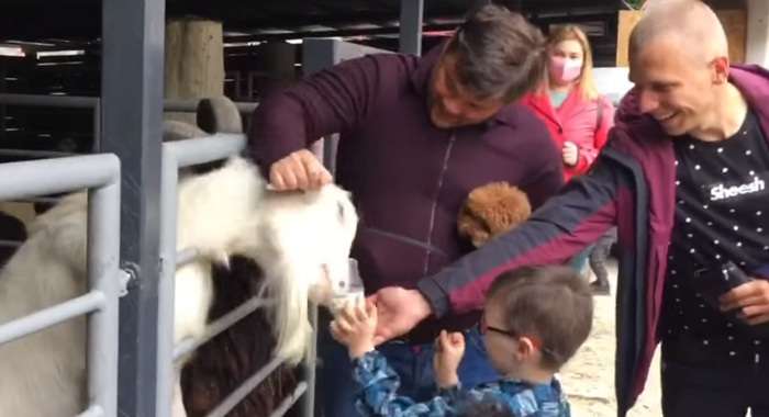 Так, Богдан зухвало потягав тварину за голову, промовивши «Козлина ты дурная». Від дій Богдана у тварини випав стаканчик з кормом. Крім того, Богдан намагався просунути своє мініатюрне цуценя до білих козлів, закликаючи улюбленця «погавкати».