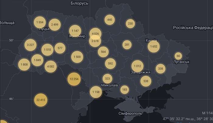 Житомирская область – 1147 случаев;