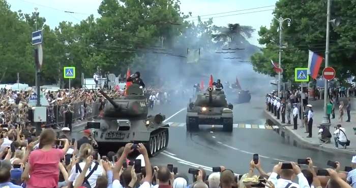 Вчора, 24 червня, у Сімферополі пройшов Парад Перемоги. Під час дійства у натовп людей ледь не в’їхав танк Т-34. Він створив перешкоду для всієї парадної колони, і через деякий час його змушені були евакуювати.