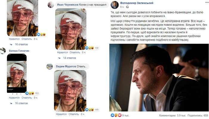 Інтернет-спільнота засипала президента України фотографіями побитого представника партії Шарія. Повідомлення з закривавленим обличчям чоловіка різко замінили хвалебні.