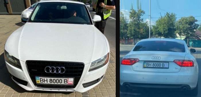 Сегодня, 1 июля, стало известно, что в Киеве обнаружили автомобиль Audi, который в минувшие выходные прибыл в Киев из Одессы. Полиция обратила внимание на то, что на его номерном знаке ВН 8000 В не хватает одной буквы, ведь она заклеена.