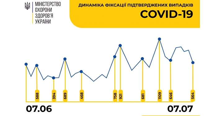 Сегодня, 7 июля, в пресс-службе Минздрава сообщили, что за минувшие сутки в Украине зафиксировали 564 новых случая заболевания на коронавирус. Больше всего новых больных во Львовской области – 144 и Закарпатской области – 83.