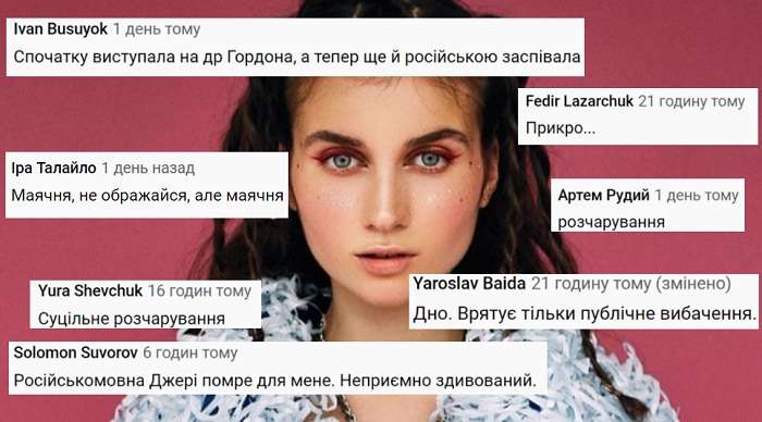 «Зачекайте, зачекайте! Я щось не зовсім зрозуміла. Хто ті всі, кого перелічено у пісні? Кого популяризує українська співачка? Чому українцям має бути цікавий російський шоубізнес? Альо, Джері, ну що за сидіння на двох стільцях? Ми бляха популяризуємо український контент, намагаємося очистити інфопростір. Наших солдат вбиває не просто “та сторона”; рос. зірки підтримують російську агресію, а ти їм реверанси робиш. Сумне видовище», – відзначили у коментарях.