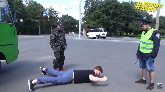 В результаті у Мережі з’явилася пародія на затримання чоловіка. Її представили блогери з Харкова Віталій Бойченко та Женя Зуб, які мають канал під назвою «Господар двору».