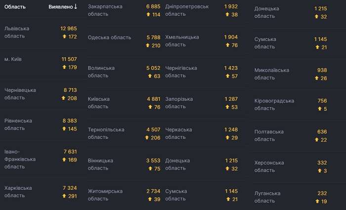 Больше всего новых выявленных больных за минувшие сутки фиксировали в Харьковской области – 291, Черкасской области – 206.