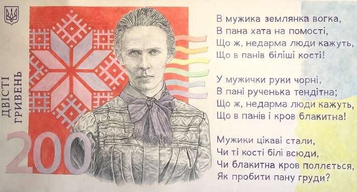 Сегодня, 24 августа, известный украинский художник Давид Чичкан, который ранее сделал иллюстрации к «Административному кодексу Украины», представил в соцсети свой вариант дизайна банкноты номиналом 200 гривен, на которой изображена украинская поэтесса Леся Украинка.