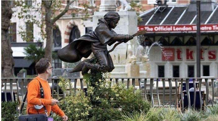 По данным издания TimeOut, в столице Великобритании появился памятник, посвященный культовому книжному герою Гарри Поттеру. Скульптуру установили на площади Лестер-сквер. Так, волшебник представлен на метле, имитируя сцену игры в квиддич.