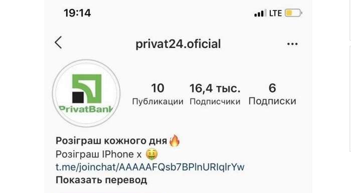Сьогодні, 5 жовтня, стало відомо, що у соцмережі Інстаграм з’явилась фальшива сторінка сервісу Privat24. Як відомо, Приват24 належить найбільшому системному банку України – ПриватБанку.