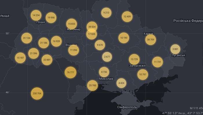 Такі дані наведені в Системі моніторингу поширення епідемії коронавірусу РНБО.