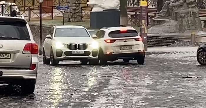 Тим часом журналісти зняли відео про те, що відбувається на дорогах та тротуарах Києва.