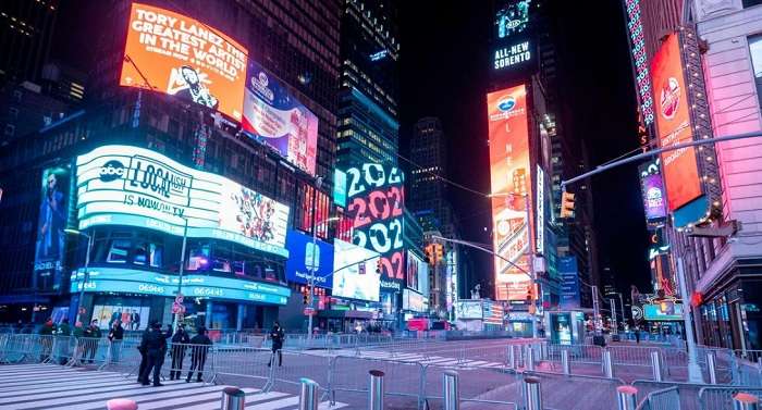 У ніч з 31 грудня на 1 січня знаменита локація Таймс-сквер у Нью-Йорку була досить незвичною. Справа у тому, що зазвичай на Новий рік тут збираються тисячі людей. Однак через пандемію у США заборонили гуляння, тому на Таймс-сквер не було великої публіки.