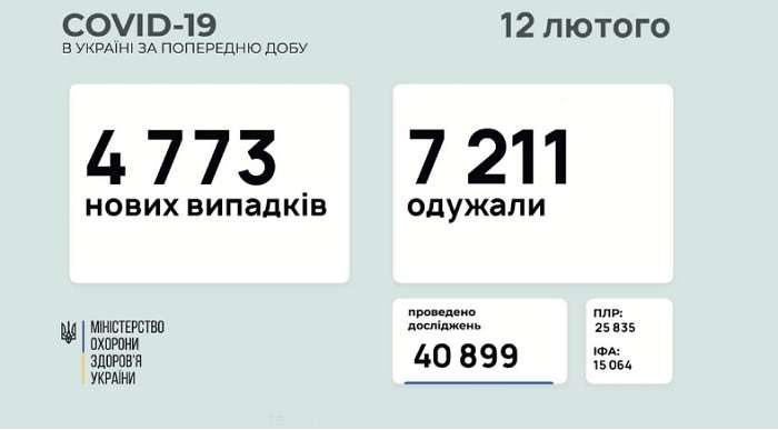 4 773 нових випадків коронавірусної хвороби COVID-19 зафіксовано в Україні станом на 12 лютого 2021 року. Зокрема,…