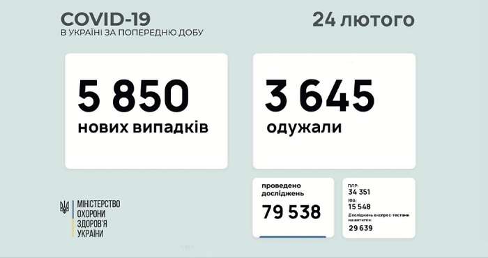 Сегодня, 24 февраля, министр МОЗ Максим Степанов представил свежую коронавирусную статистику. За прошедшие сутки было выявлено 5850 новых больных. Так, в Украине наблюдается увеличение количества больных. За сутки заболели 316 детей и 271 медработник.