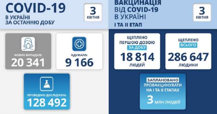 20 341 новий випадок коронавірусної хвороби COVID-19 зафіксовано в Україні станом на 03 квітня 2021 року. Зокрема,…