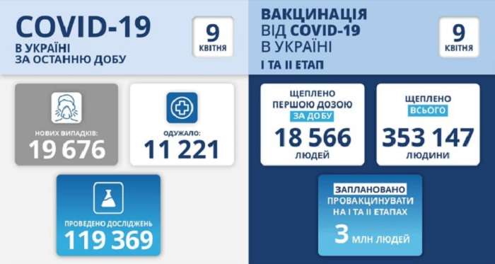 19 676 нових випадків коронавірусної хвороби COVID-19 зафіксовано в Україні станом на 09 квітня 2021 року. Зокрема,…