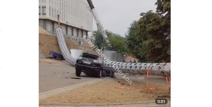 Сьогодні, 20 серпня, стало відомо, що у Херсоні звалився величезний флагшток, який встановили до святкування Дня незалежності. На жаль, він впав прямо на припаркований автомобіль Lexus. Обійшлось без постраждалих.