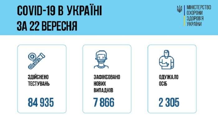 Сегодня, 23 сентября, в пресс-службе Минздрава сообщили, что за минувшие сутки в Украине обнаружили 7866 новых коронавирусных больных. Из них 667 детей и 175 медработников. Уже традиционно, с возрастанием количества новых больных в Минздраве отчитываются о большем количестве летальных случаев – 123.