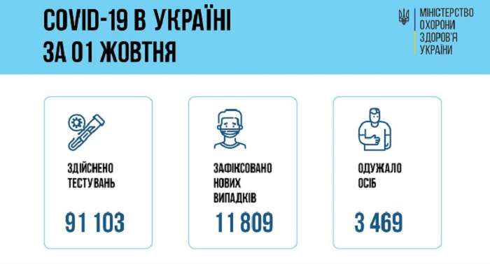 В первый день октября в Украине обнаружили 11 809 новых ковидних больных. Из них 1104 ребенка и 235 медработников. Об этом рассказали в пресс-службе Минздрава.