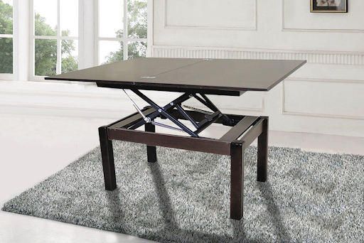 По назначению столы бывают журнальными, обеденными и письменными. Первоначальным вариантом обычно является журнальный столик. Он представляет собой изделие небольшой высоты с маленькой столешницей. Путем некоторых манипуляций он может превратиться в высокое обеденное приспособление в 2-3 раза по увеличенной столешнице. Конструкция механизма трансформационной модели бывает: