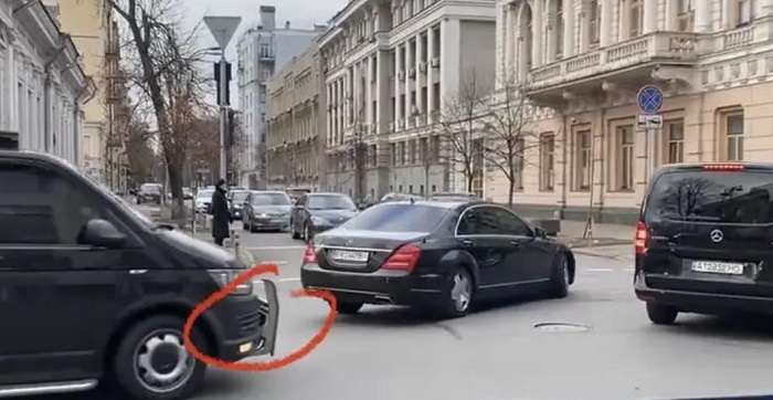 Журналісти зауважили, що Зеленський дивним чином пересів з нового представницького седана Mercedes на таке ж авто, тільки в кузові більш ранньої модифікації. Авто президента супроводжує авто охорони з «кенгурятником» на передньому бампері.