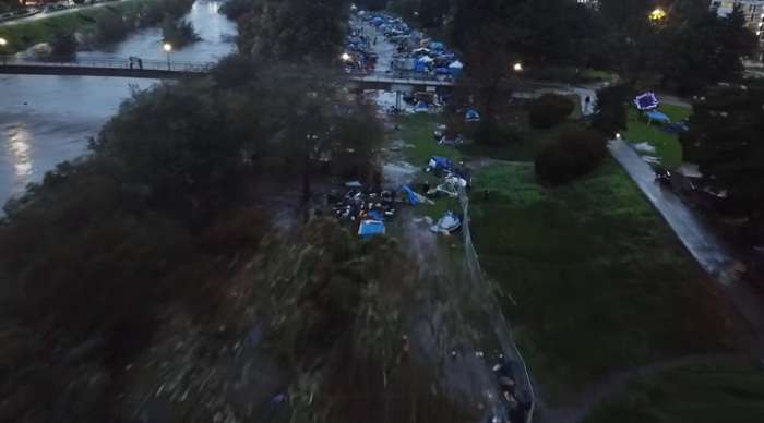 «Зацініть відео, зняте дроном над одним із таборів бездомних у Санта Круз, Каліфорнія, по якому щойно вдарили сильні дощі. Влада не надала людям ні засобів теплозахисту, ні евакуації на час шторму. Видовище із першої економіки світу», – зазначив він.