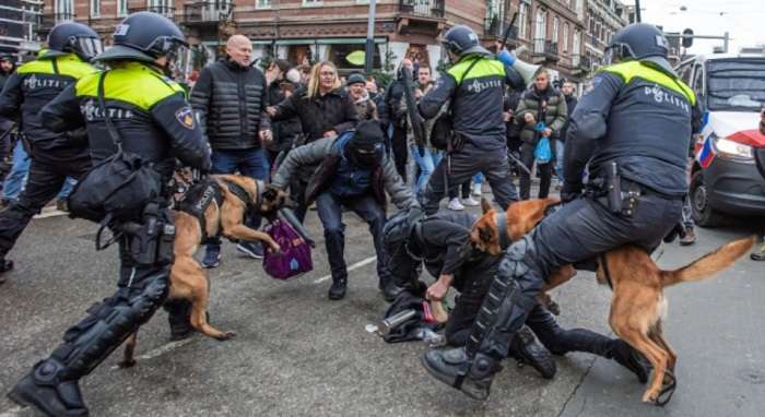 Сьогодні, 3 січня, стало відомо, що в Амстердамі під час неодобреного маршу противників локдауну та вакцинації поліція вдалась до жорстких заходів, спустивши на людей своїх собак.
