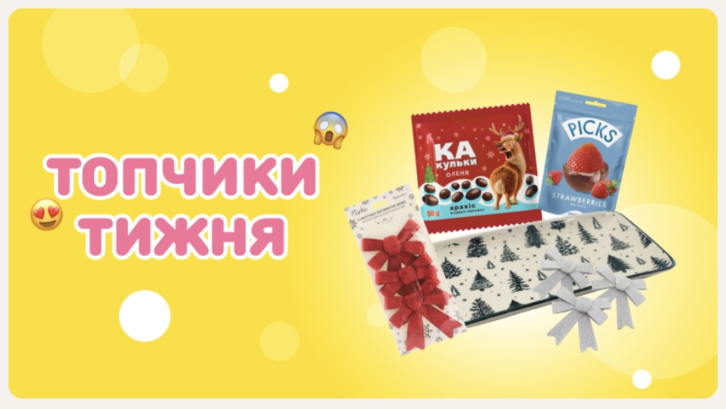 Ось основні товари з акції «Топчики тижня», які можна знайти в магазинах Аврора в період з 22 по 28 грудня зі знижками: