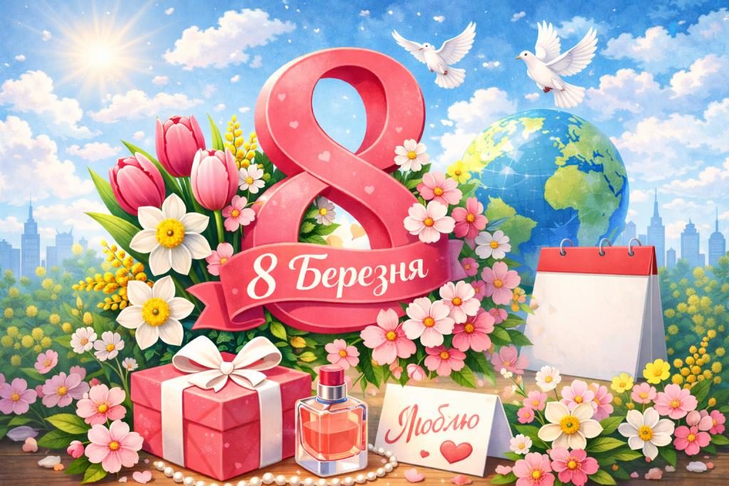 В Україні 8 березня традиційно вітають матерів, бабусь, дружин, сестер і колег. У багатьох сім’ях цей день проводять разом, дарують квіти, подарунки та теплі слова. Особливу увагу приділяють жінкам у родині, адже свято вважається символом вдячності та поваги. Часто організовуються святкові заходи, концерти та тематичні події. У школах і колективах прийнято вітати жінок і дівчат із цим святом.